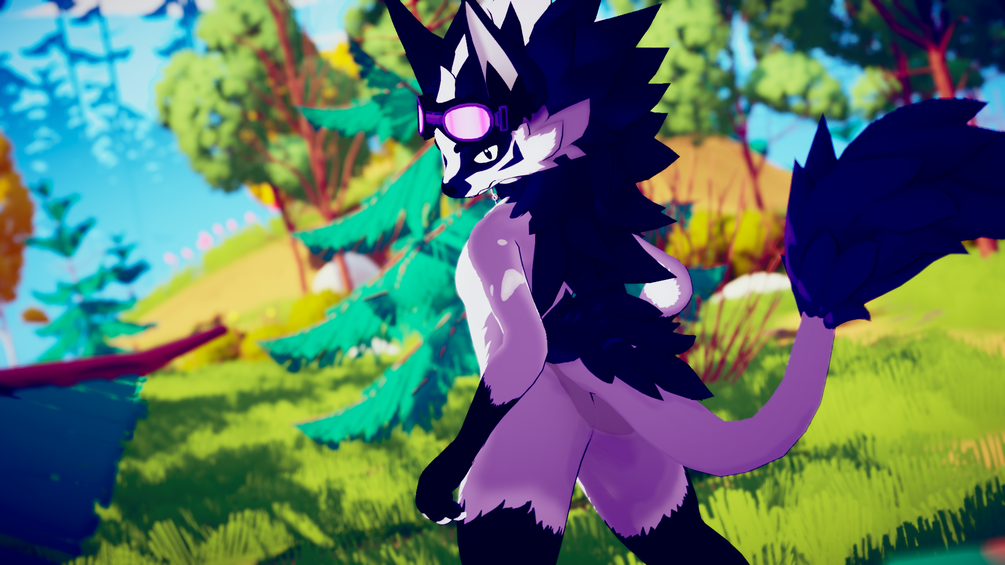 Included in this package is a pre-setup material for both the body, hair and eyes set up with Poyomi 8.2 Toon with basic shading, emissions and outlines set up. The included textures for this pack are for the base body, eyes, fluff and googles. Downgrading or uprgrading from 8.2 may or may not break the material's setting but are easy enough to repair as all the assets used to build the materials are present in the color folders.