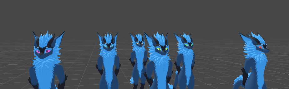 This is an eye texture pack for the Nardoragon that comes with 45 color variations including 9 same colored and 36 heterochromatic colors. One black and white mask is provided in the files as well. Also included in this package are 45 materials pre set up with poiyomi 8.1 Toon with not only basic emissions but audiolink set up. Downgrading and upgrading from 8.1 may or may not break the material settings but are easy to repair as all the assets used to build the materials are present in the color and mask folders.