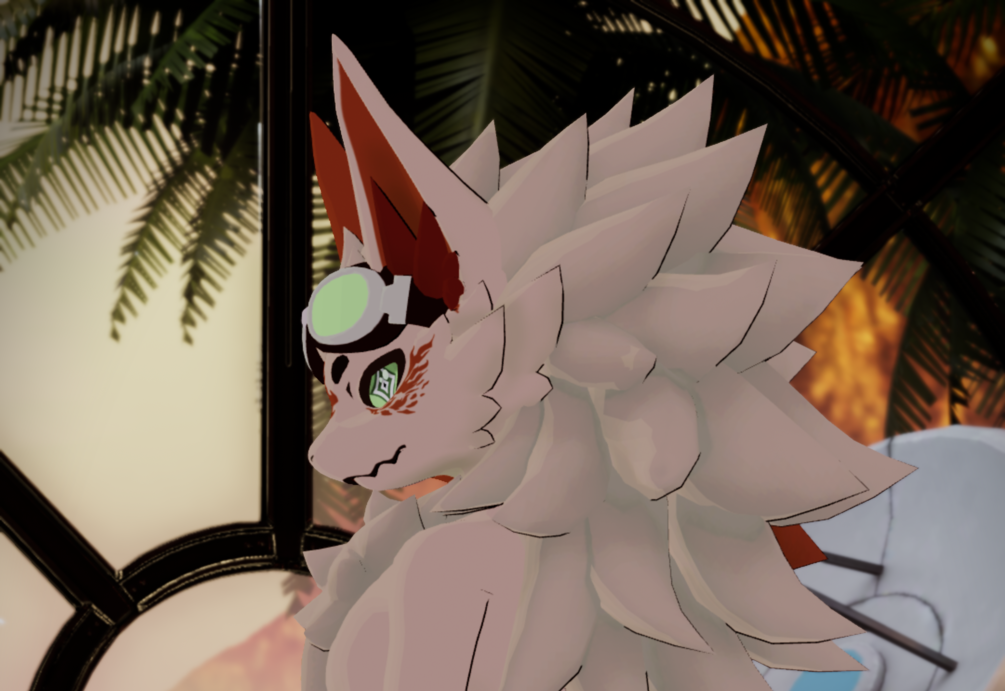 Included in this package is a pre-setup material for both the body, hair and eyes set up with Poyomi 8.2 Toon with basic shading, emissions, outlines and audiolink set up. The included textures for this pack are for the base body, eyes, fluff and googles. Also included in this package are two black and white masks for the body and the fluff.